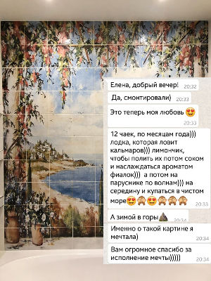 Можете быть уверены в качестве нашей продукции, потому что специалисты компании «ОРТОГРАФ» контролируют весь процесс от заказа до получения готового изделия клиентом. Мы всегда проконсультируем и поможем выбрать материал, подходящий для того или иного помещения: будь то фреска для частного интерьера, фасада или фотоплитка для бассейна.