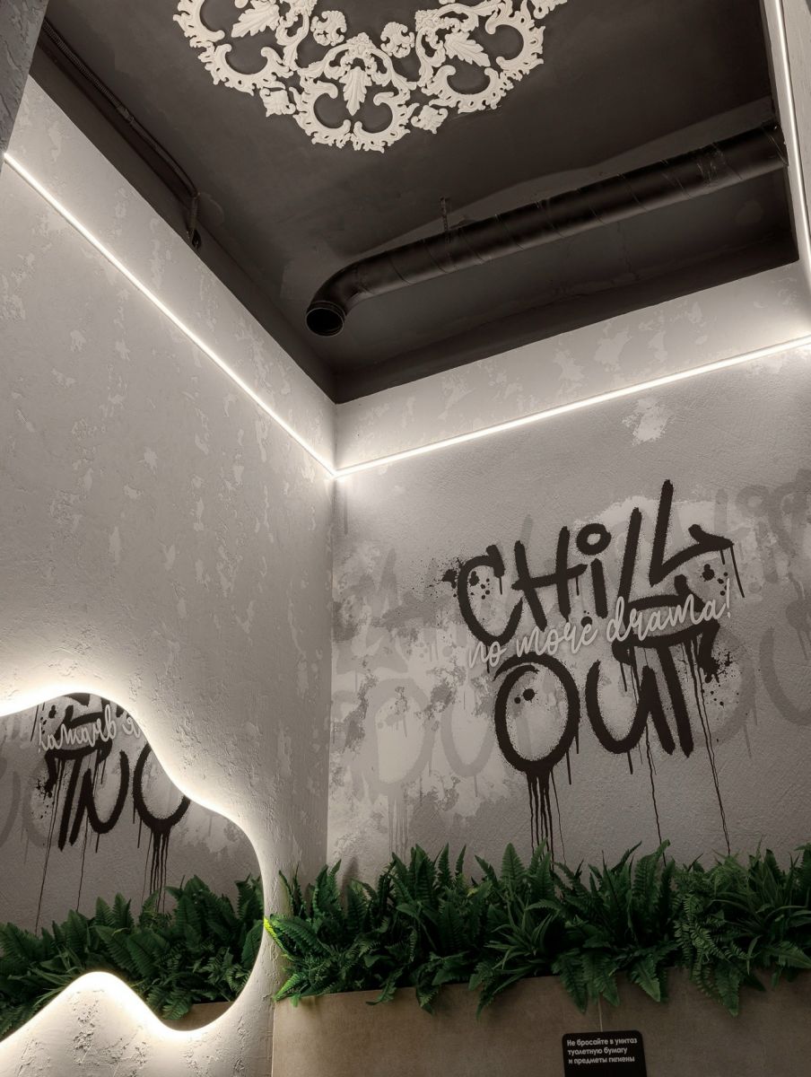 На первый взгляд, ничего. Однако наши клиенты нашли идеальное решение! Они оформили свой цветочный салон бесшовными обоями ECO с изображением граффити (Арт. 35579, Арт. 35620) из нашей дизайнерской коллекции «Letter», выбрав сразу два трендовых дизайна в актуальном сером оттенке.