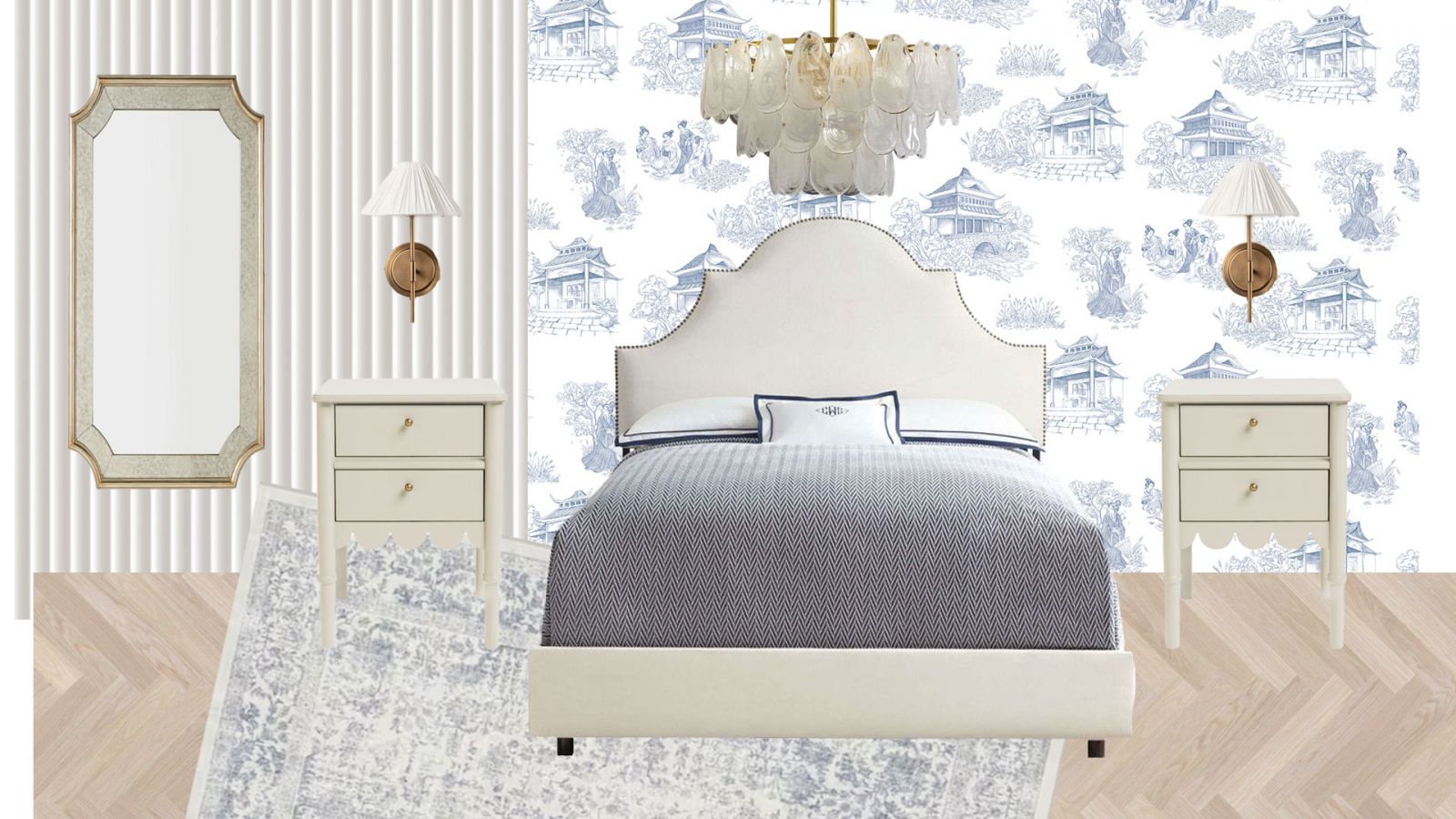 Спальня в современном французском стиле лёгкая и воздушная, в ней лишь лёгкий флёр помпезности и роскоши. Большая кровать с изогнутым изголовьем, тюль и плотные шторы. Стену за кроватью можно украсить обоями с ненавязчивым цветочным орнаментом. Не перегружайте комнату мебелью. Достаточно прикроватной тумбы со светильником, пуфика, туалетного столика. Если есть возможность отказаться от массивного шкафа в пользу встроенных решений или современной минималистичной модели, воспользуйтесь ею. На стенах в качестве декора можно повесить картину или несколько фотографий. Но не перестарайтесь. В данном случае лучше один элемент декора, чем целая картинная галерея.