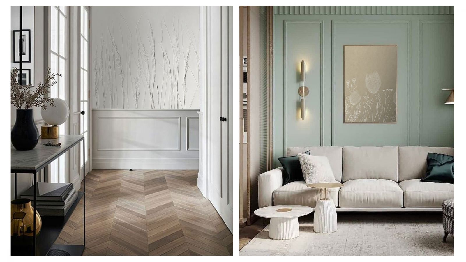 В то время, когда современные интерьеры отдают предпочтение открытым совмещенным пространствам и свободным планировкам, французский стиль остаётся верен камерности и уединённости. Даже если квартира не располагает большим количеством квадратных метров, в ней обязательно будут возведены стены, перегородки. Соответственно, нужно много света, чтобы наполнить помещение визуальным объёмом. Отсюда и выбор в пользу светлой цветовой гаммы в белых тонах. Стены как правило красят в белые, молочные оттенки, наносят венецианскую штукатурку. Но также имеют место быть и обои в стиле прованс. Чаще всего это простые геометрические узоры или флористические мотивы. Элегантные изящные линии, наивные цветочные орнаменты, сдержанная цветовая гамма – всё это настоящий маст-хэв для тех, кто стремится превратить своё пространство в частичку утончённого современного Парижа.