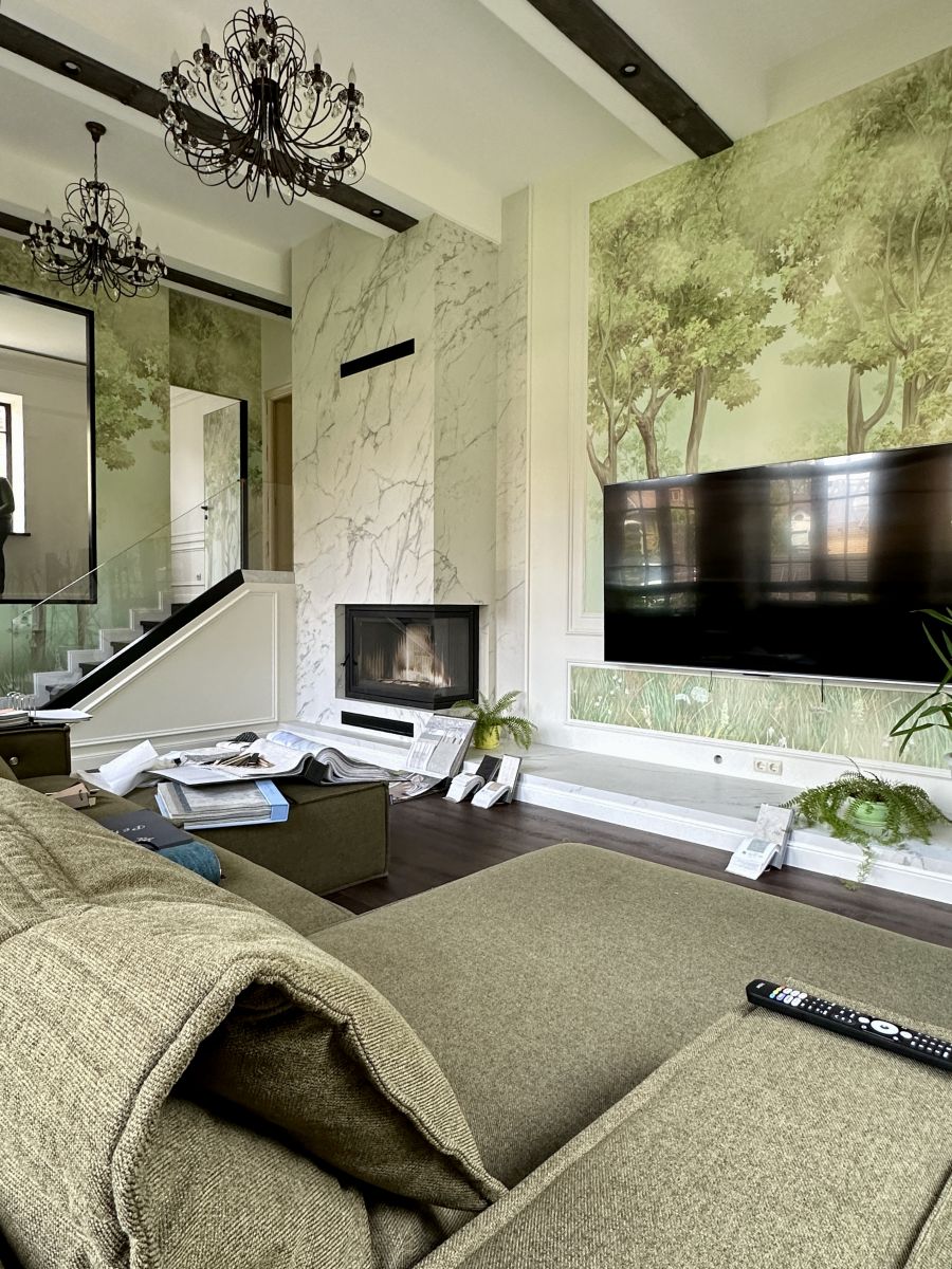 Наши клиенты не просто мечтали об этом - они воплотили свою идею в жизнь, украсив стены ЭКО фреской с изображением леса из дизайнерской коллекции «Аврора» от ОРТОГРАФ. Теперь их стены шепчут о прохладе тенистых рощ, о пении птиц, о запахе влажной земли после дождя. Это место, где можно позволить себе погрузиться в объятия природы!