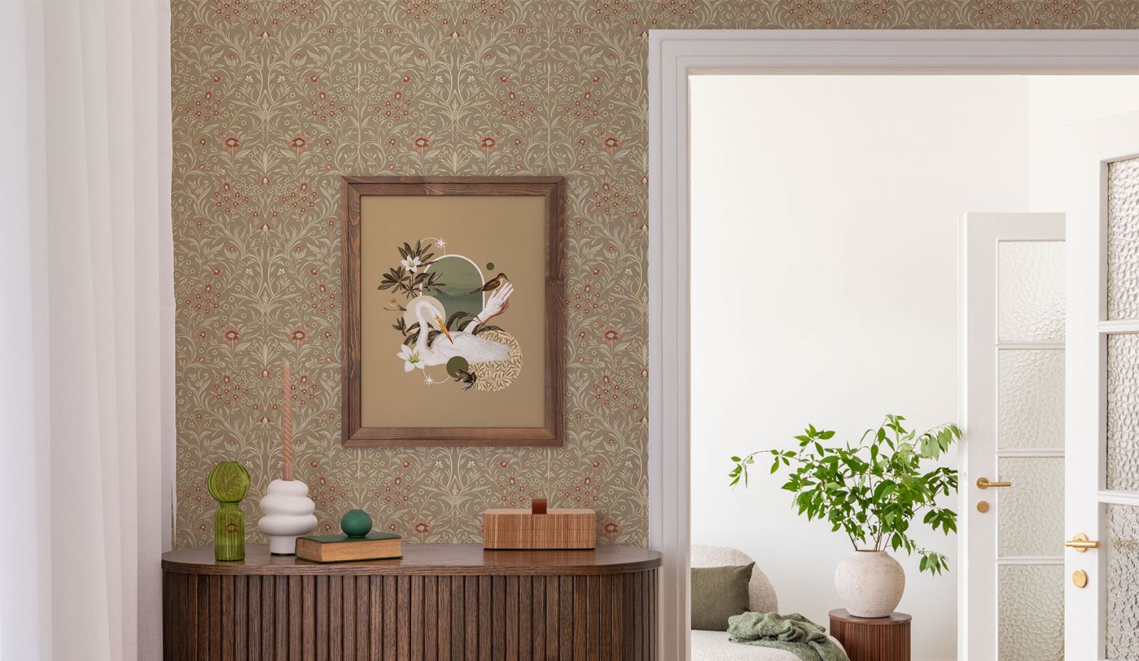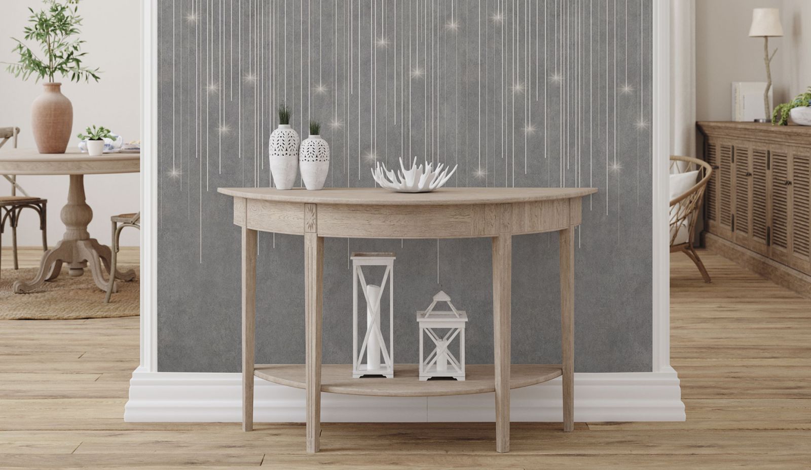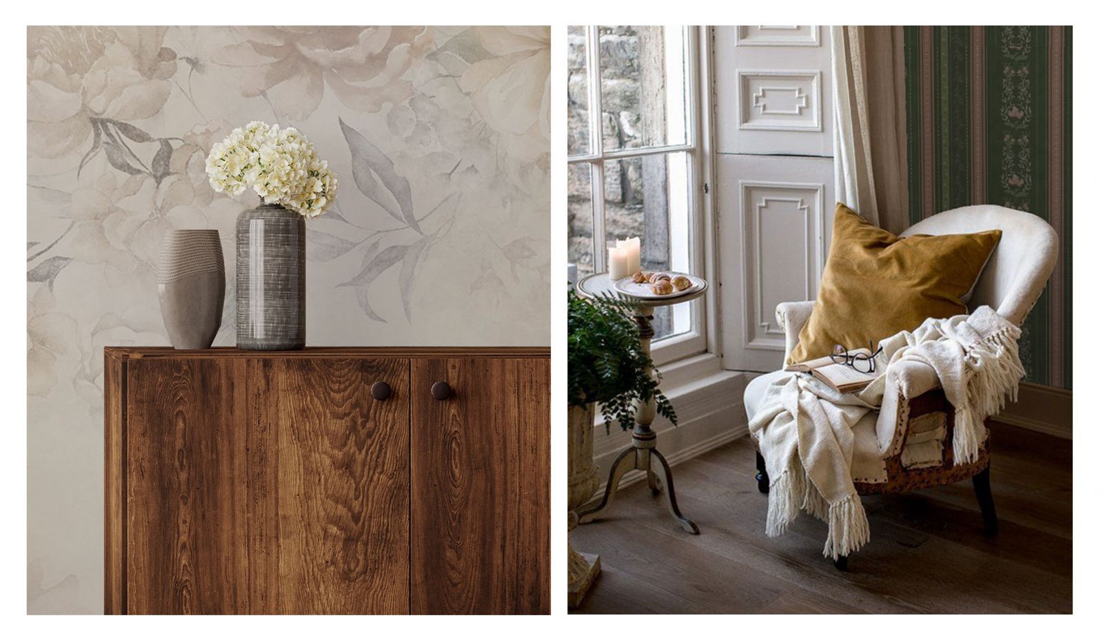 Как правило, стены в переходном стиле являются лёгким ненавязчивым фоном. Из материалов предпочтение отдаётся фактурной штукатурке, декоративному кирпичу с эффектом натуральной кладки, деревянным панелям. Чтобы привнести ту самую индивидуальность и изюминку в переходный интерьер, отличным выбором станут обои с лёгким ненавязчивым сюжетом. Гармоничные цветовые вариации, дизайнерские сюжеты на любую тематику (будь то классические узоры и вензеля или та же имитация природных текстур) позволят создать оригинальный акцент на определённой зоне вашего пространства, наполнят его смыслом и оригинальностью. К тому же, они максимально экологичны, подходят для размещения в спальнях и детских комнатах.