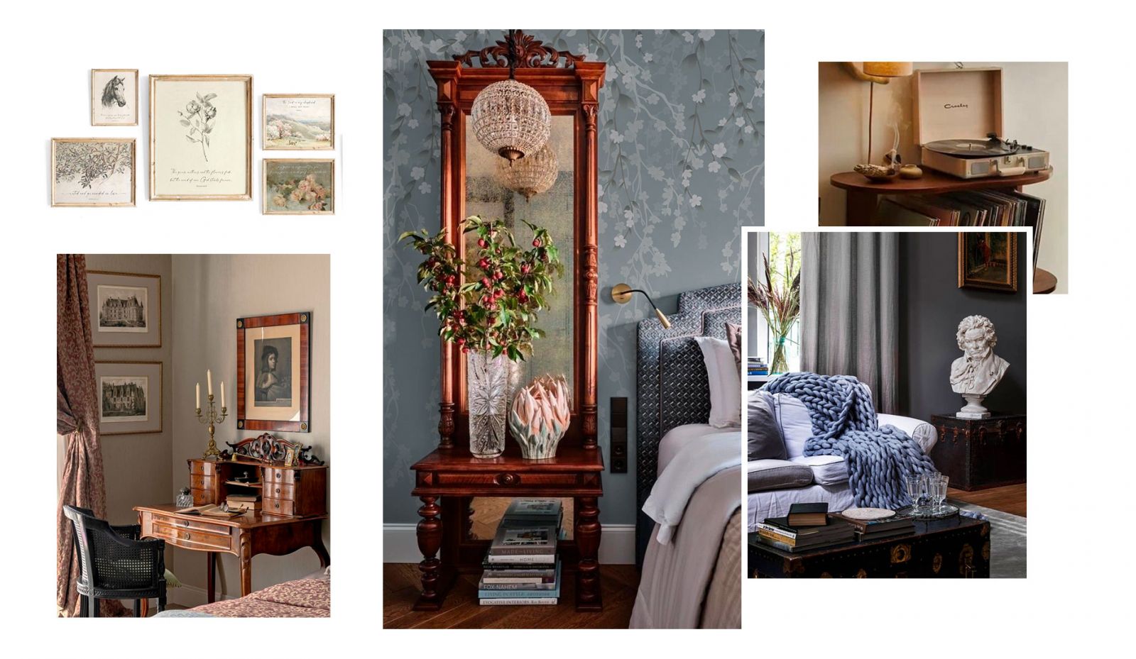 • Делайте акценты. Достаточно всего нескольких вещей с ярким отголоском прошлого, чтобы интерьер приобрёл настроение винтажности. Пусть это будет старинный сервант, старый журнальный столик с кружевной салфеткой и зеркало в металлическом обрамлении. Даже 3 вещи вдохнут в интерьер особую атмосферу, но не превратят его в исторический музей.